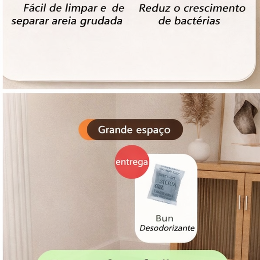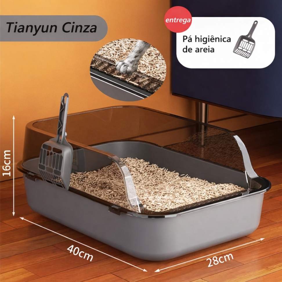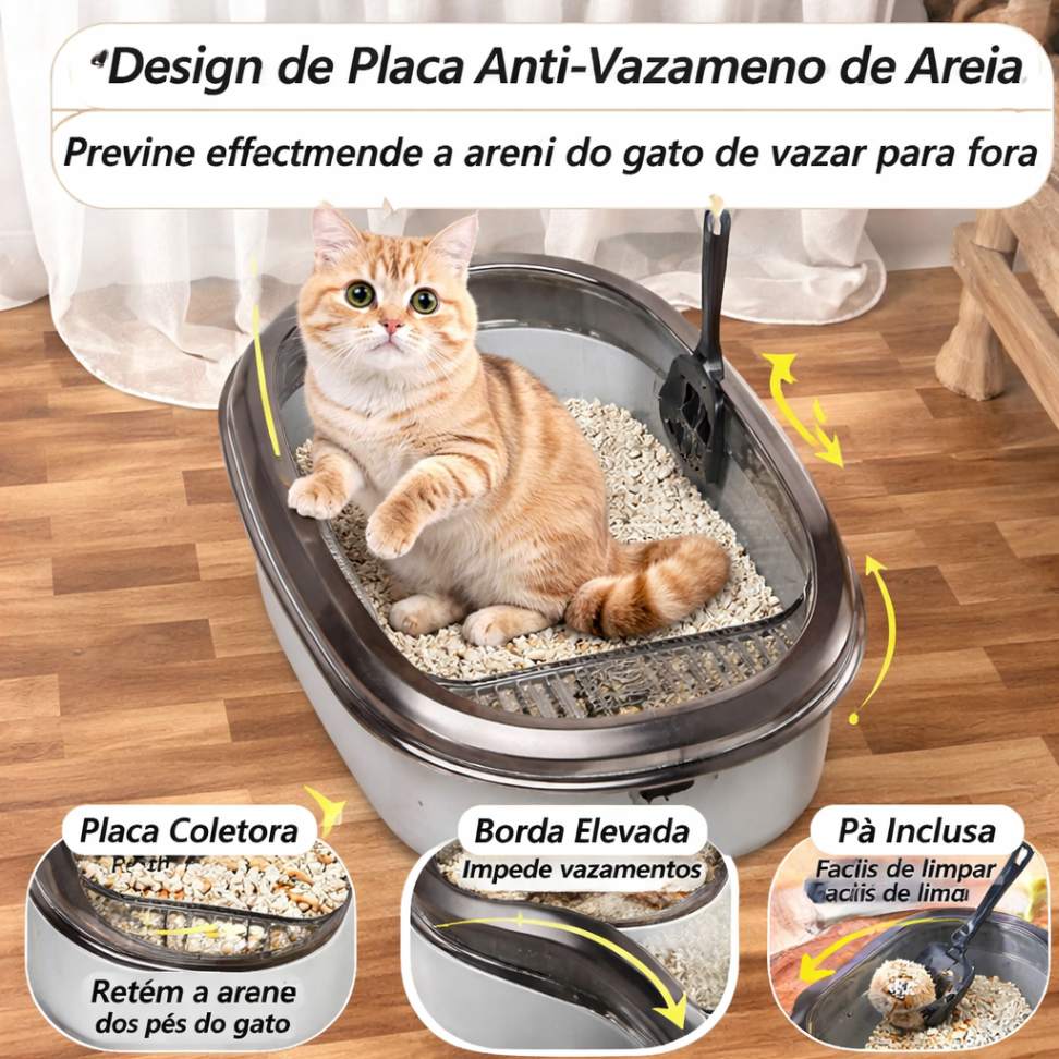✔️ Lados altos anti-respingos – Evita que a areia se espalhe pelo chão, reduzindo sujeira e facilitando a limpeza.