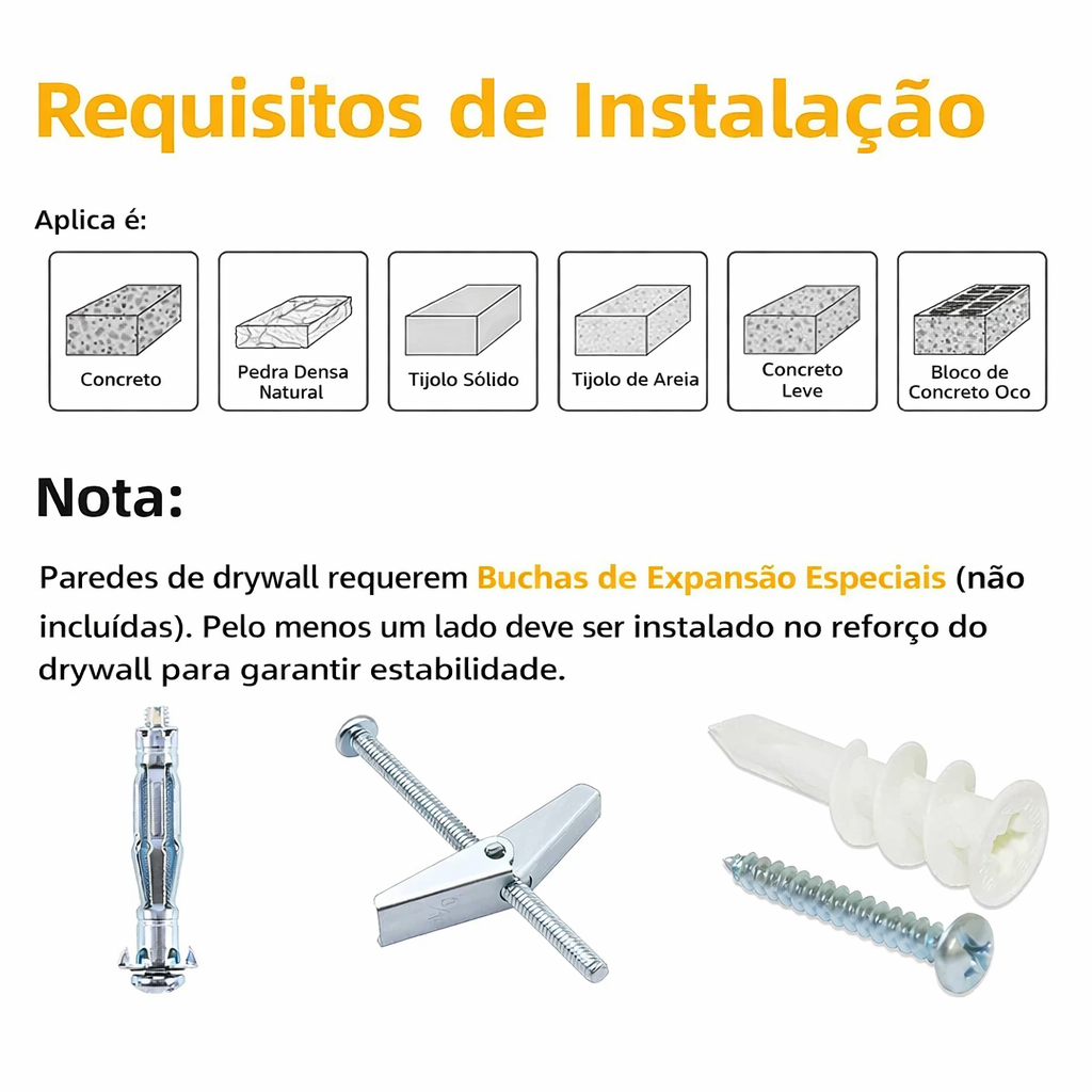 Perfeito para ambientes pequenos. A estrutura é instalada na parede, liberando área útil no chão.
